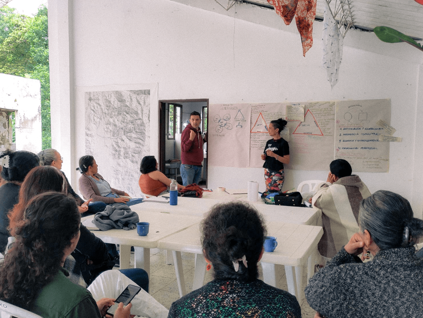 A la sala comunal d’Aguaclara, una sala senzilla, amb parets que han sentit més històries que moltes biblioteques, ens vam asseure amb més de 20 lideresses comunitàries. No venien a “rebre una formació”: venien a pensar el futur del seu territori amb la mateixa serietat amb què es pensa una casa, un fill o una collita.