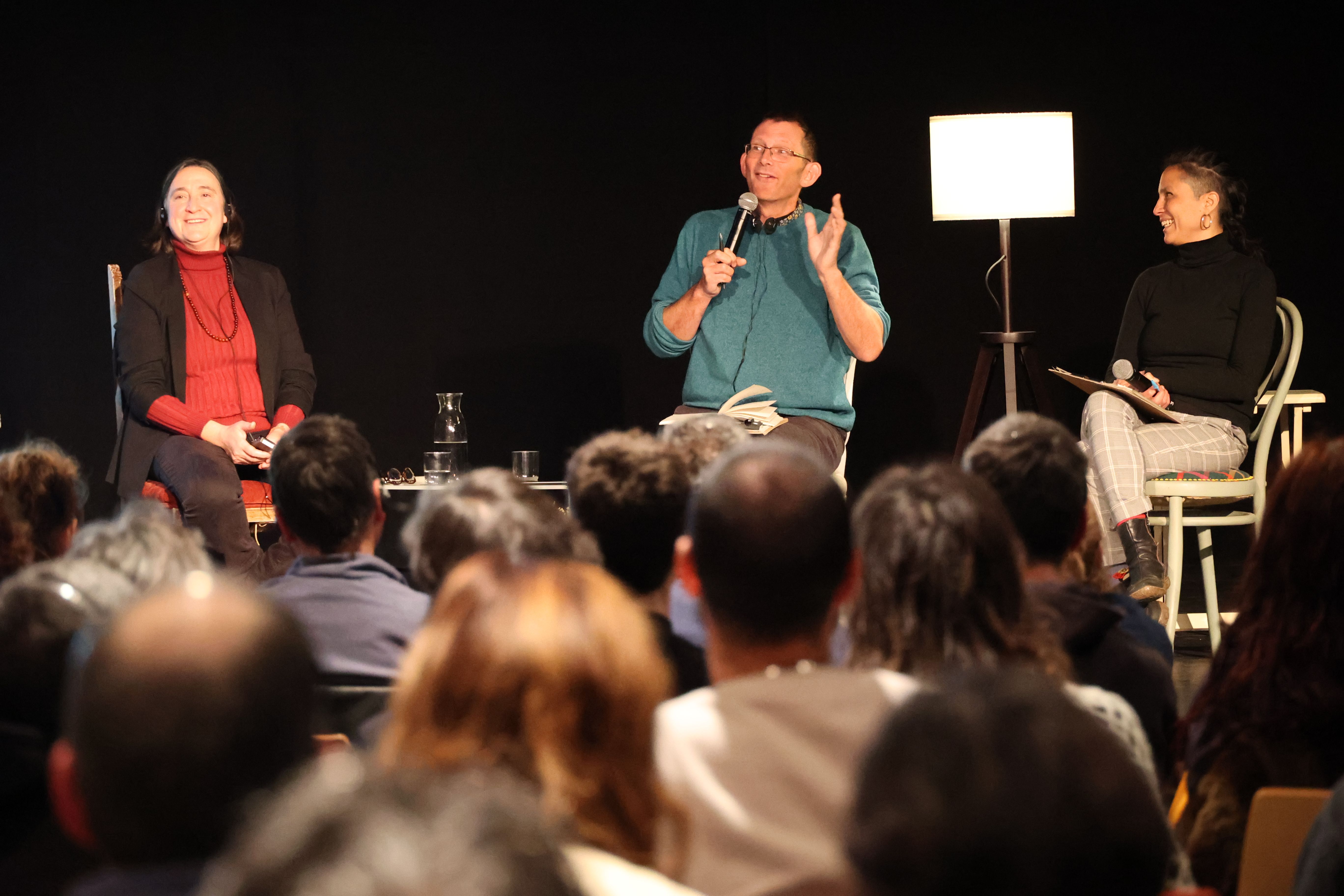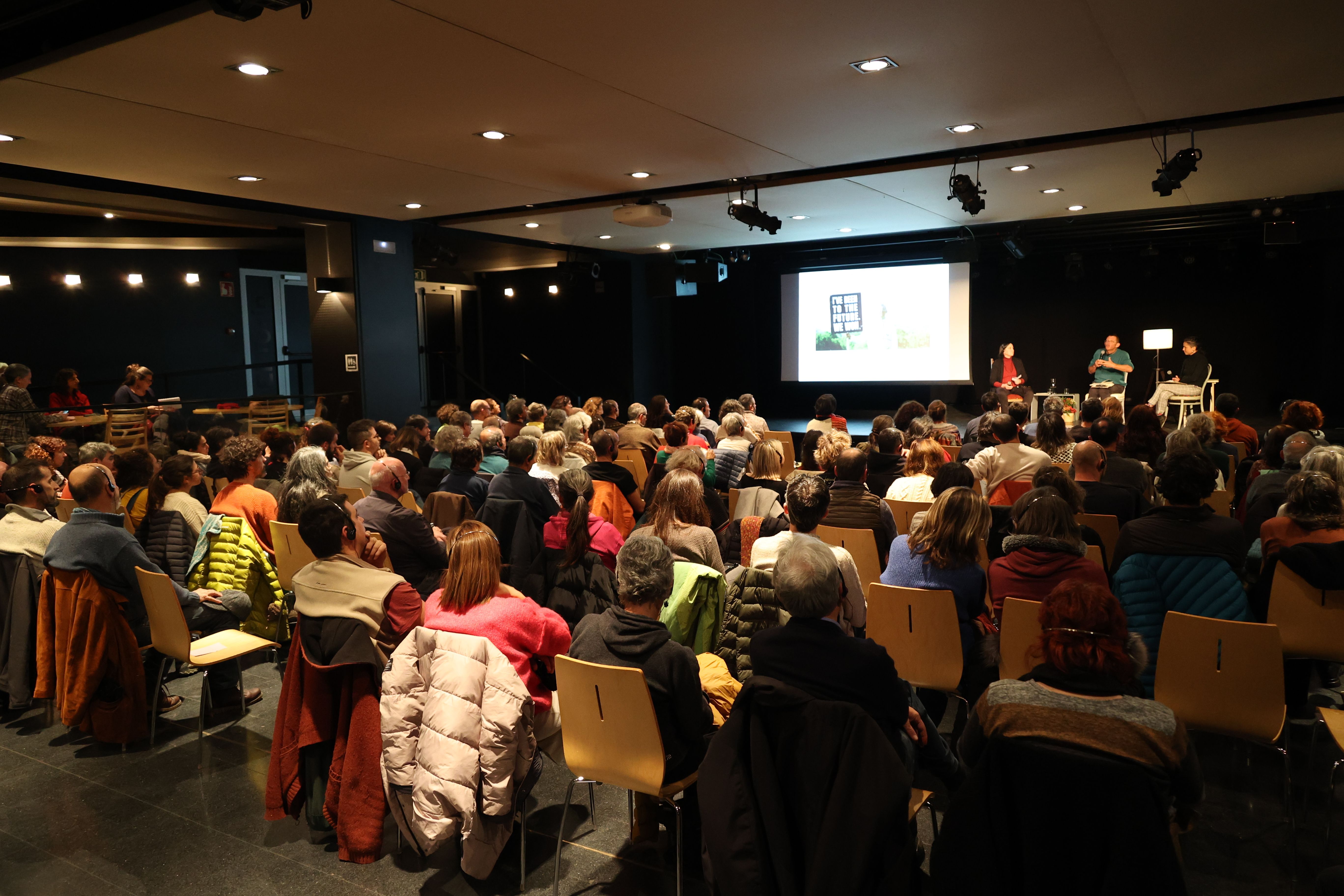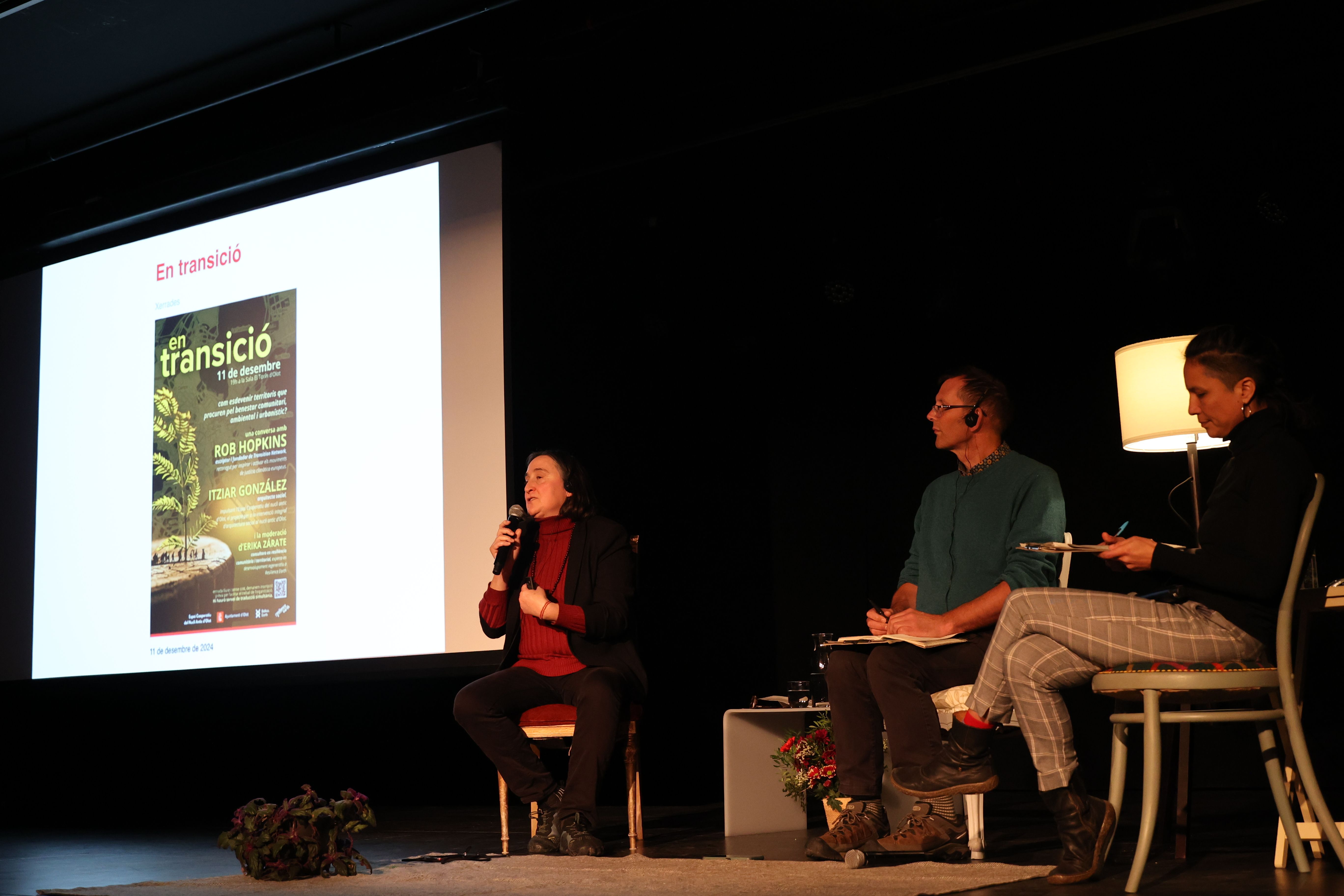 La sala Torín de Olot acogió el miércoles 11 de diciembre a más de 150 personas en el marco de la conversación 'en Transición' una reunión muy especial entre Rob Hopkins, Itziar González y Erika Zárate.